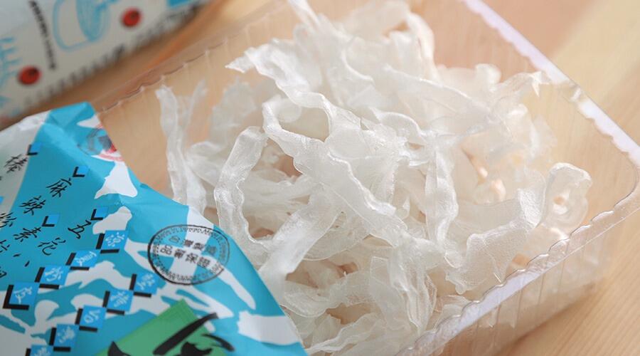 Horse Tail Chinese Sheet Jelly is produced by exclusive freeze drying tech. It is the perfect width, crystal in appearance, and chewy to taste. It’s designed for ordinary family, with enough servings and is easy to cook.